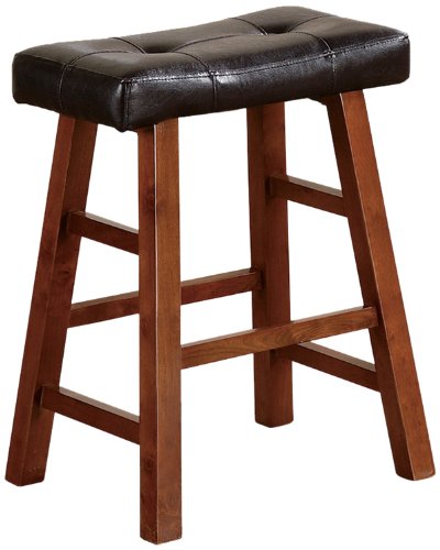 Contemporary fashion for your living spaces delivered with these walnut framed stools with brown faux leather rectangular shaped seat cushions. Comes with 2 24" stools.